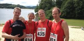 Am vergangenen Samstag, dem 22.06., starteten aus unseren Reihen Alwine und Ingo Samp, Boris Wortmann und Christian Springob beim 3. Biggeseemarathon auf der Viertelmarathonstrecke über 11km Länge. Von Beginn an konnte man das Quartett in den roten Shirts im vorderen Bereich des Läuferfelds sehen. Insbesondere bei den Steigungen zeigten die